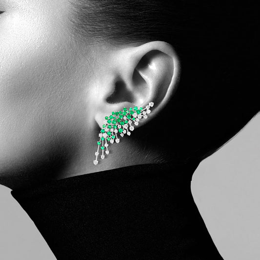 18k 8.40 Cts Emerald And Diamonds Mirage Earring (E1369AWDEg)