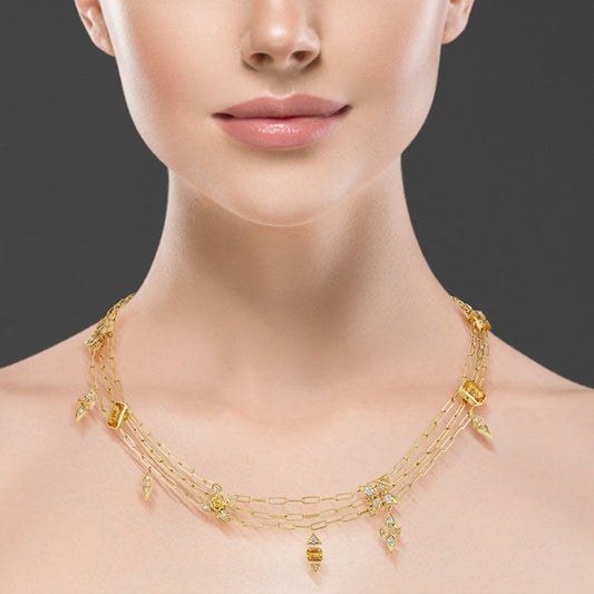 18k 2.54 Cts Citrine And Diamonds Onsa Necklace (N1073AYDCY)