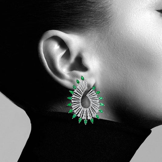 18k 6.75 Cts Emerald And Diamonds Mirage Earring (BR9043AWDEg)